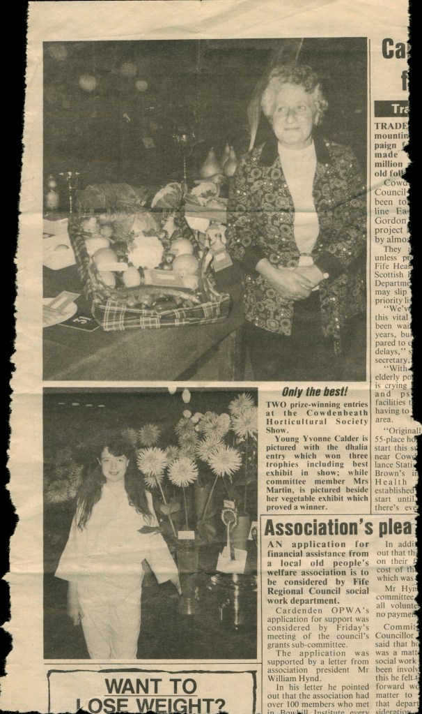 She also shared the trophies and picture of her late mother who won prizes in the Cowdenbeath Horticultural Society Show and was a very community-minded woman, joining various clubs and societies across the area.